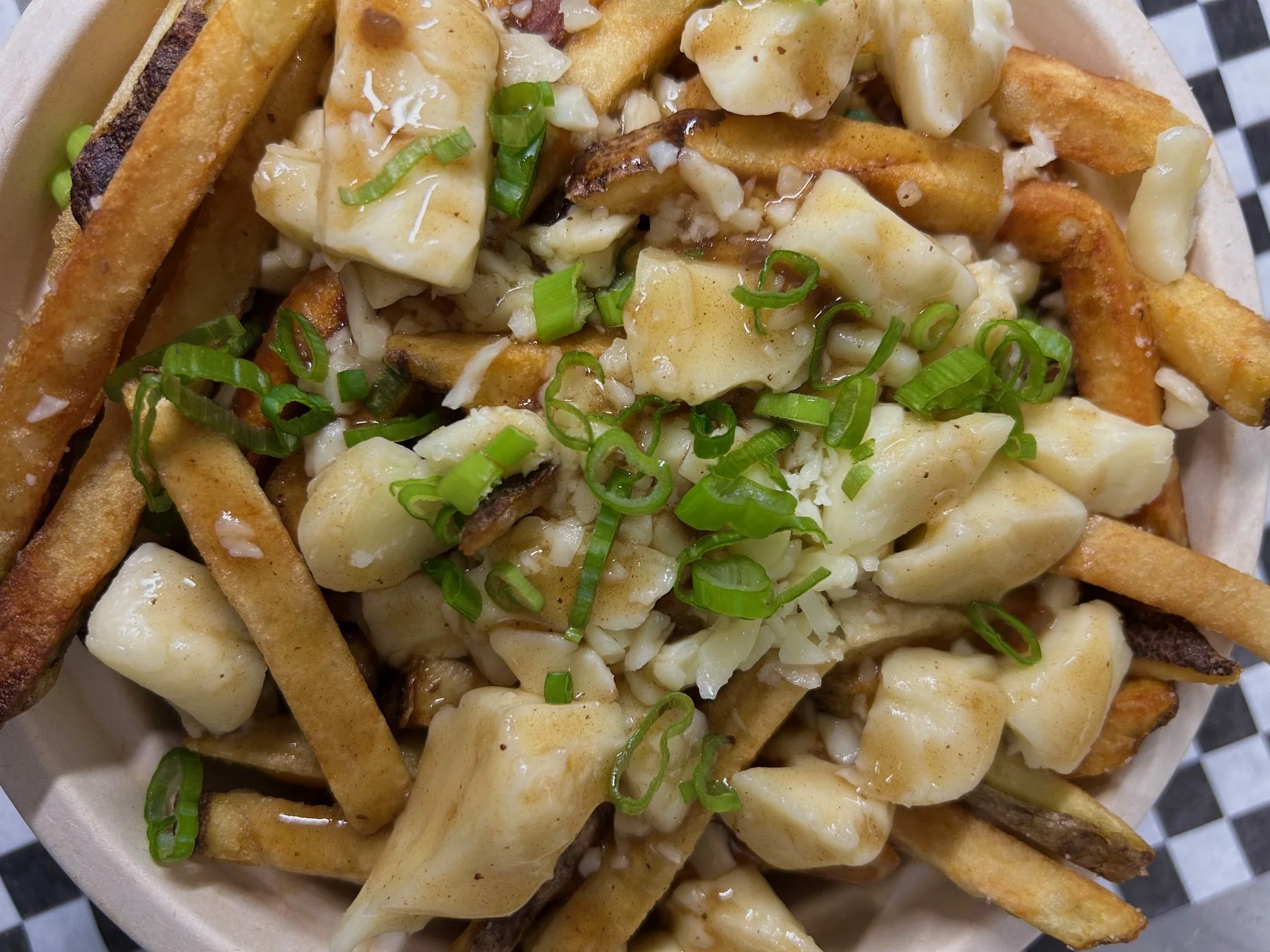 Hand-cut fries and Beecher’s cheese curds covered in mushroom-curry gravy; garnished with sliced scallions